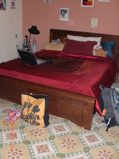 A break down of the day. First I got on the plane, nothing new there...Same ole' same ole' except that I had this awesome pastry which was described on the package as "liquor fermented mugwort" flavored bread. It was delicious!Once the plane touched down I knew I was in a different country. Vietnam has many of the modern technologies that many of us can't live without but it is just packaged differently. Things here aren't that developed and many buildings look old and worn down. It's sorta charming and just sorta weird. Some pictures of Mel's place, which is actually really nice.